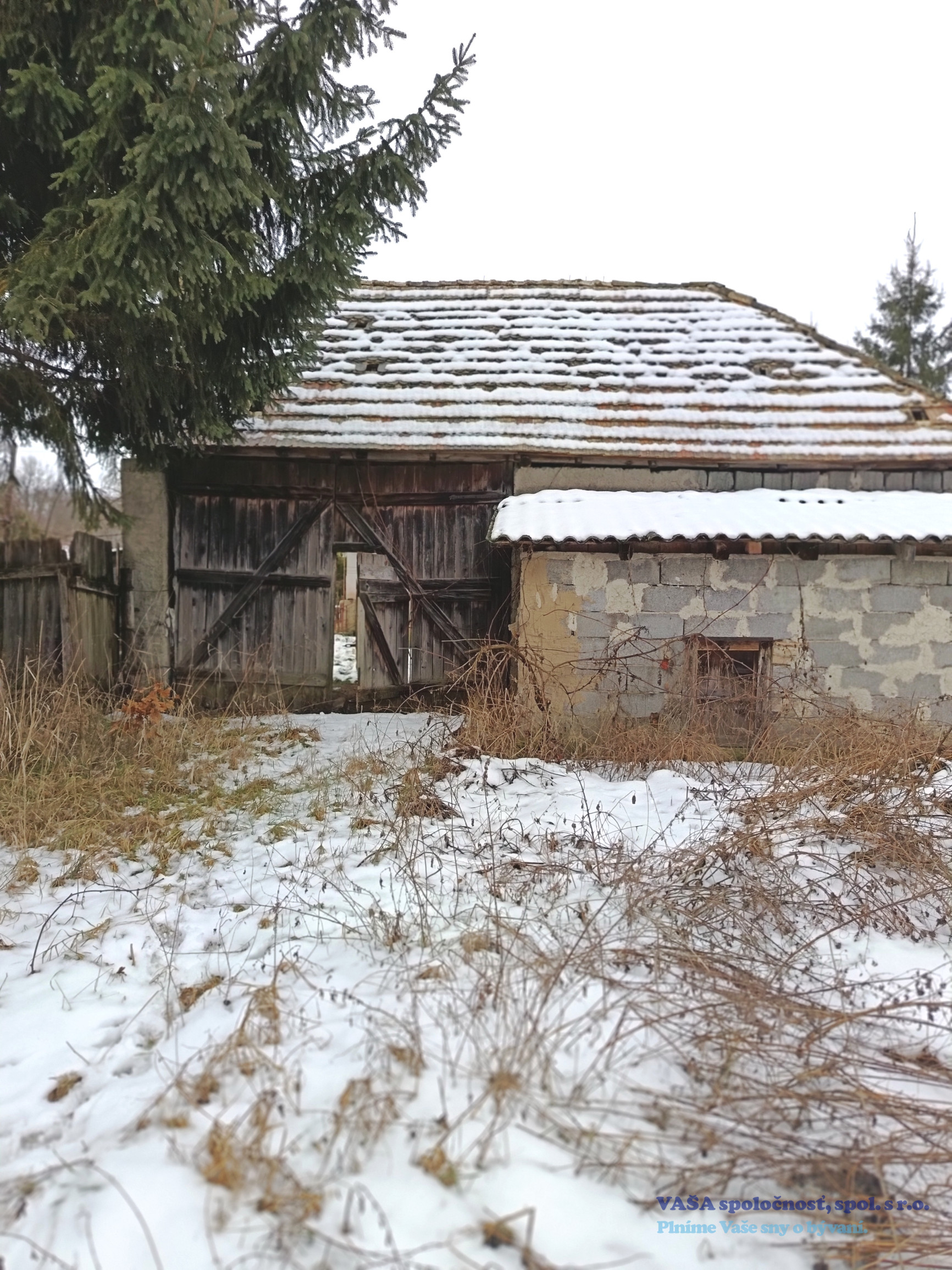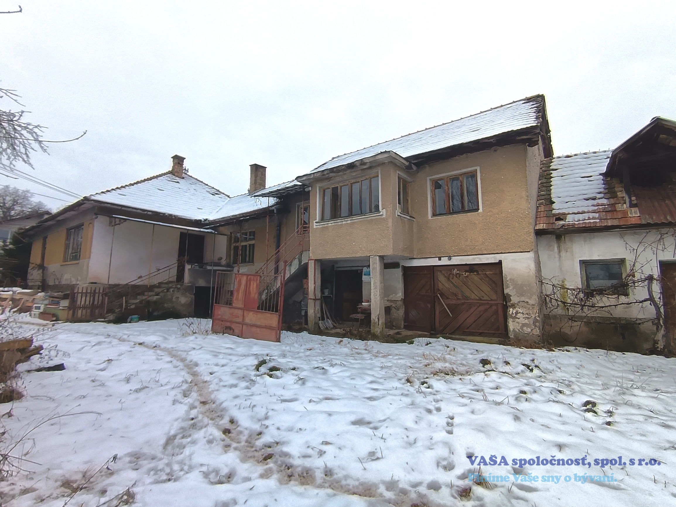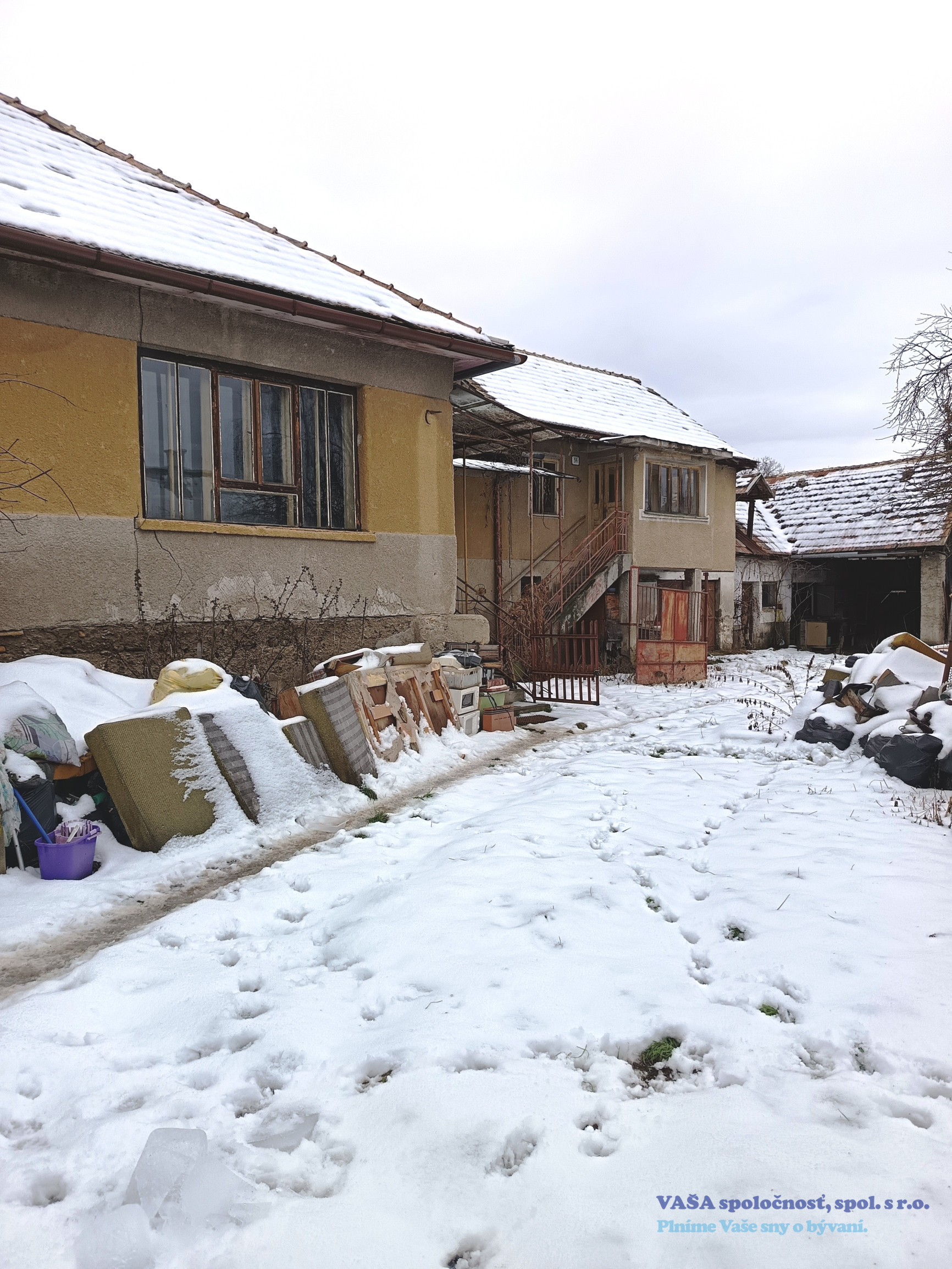 Za predným domom sa nachádza ďalší starší domček s dvomi izbami a kuchyňou. V zadnom domčeku nie je zavedená voda. Na pozemku sa nachádza aj veľká drevená šopa, garáž a studňa.